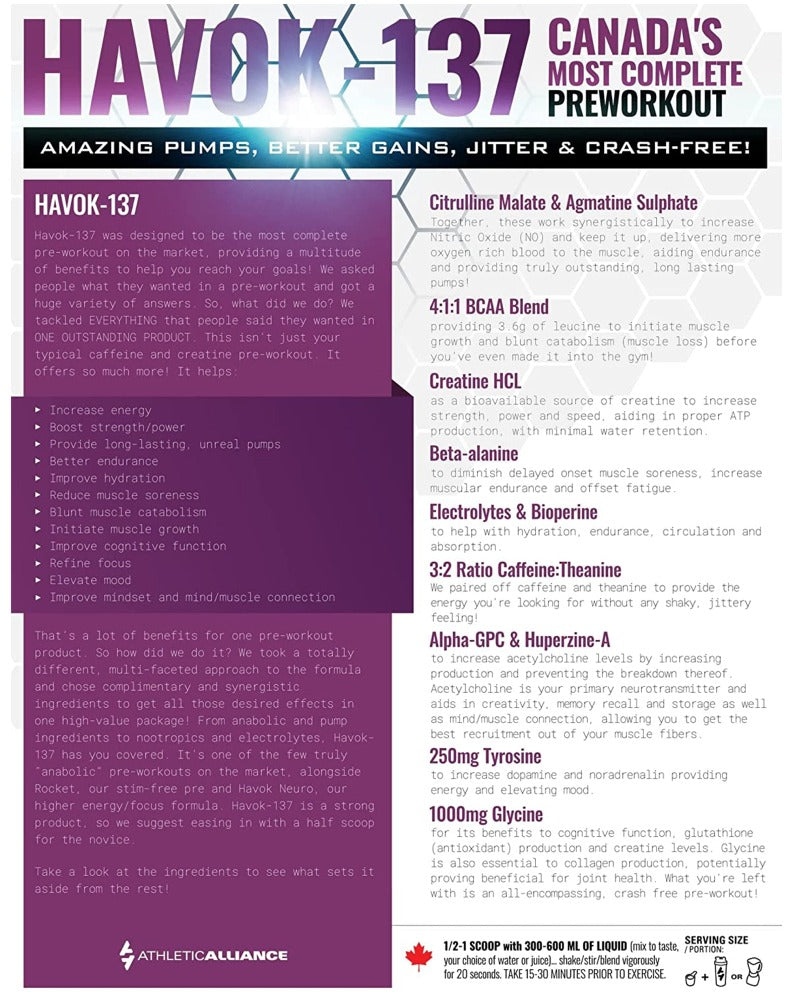 ATHLETIC ALLIANCE - HAVOK-137 Pre Workout - 690 Gram(s) - NPN: 80079474